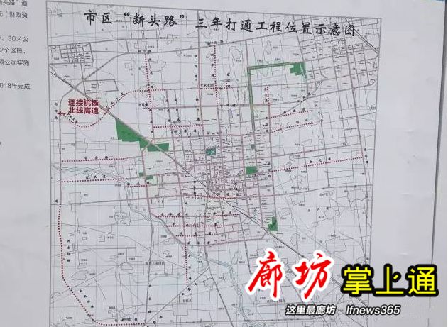 廊坊市区城市道路计划利用三年时间,实施17条、29个区段“断头路”道路通畅工程,道路建设总里程54.7公里。按照时间计划安排,2017年完成11个区段、18.5公里;2018年完成13个区段、25.6公里;2019年完成5个区段、10.6公里。
