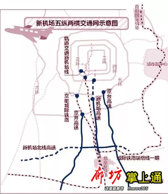 借助临空经济区“五横两纵”交通路网框架,依托现有的京台、密涿高速以及规划中的105国道,形成我区以新机场为中心、纵贯南北、横贯东西、对接京津、内联外通的交通陆港,全面提升广阳区周边基础设施水平。
