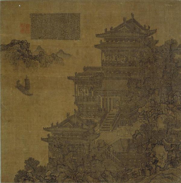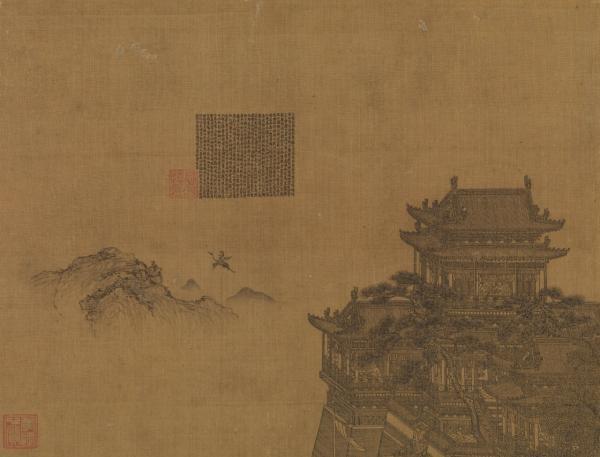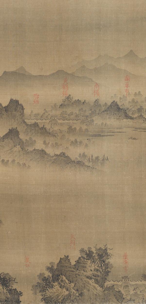 宋 无名氏《长江万里图》(局部),图中标有“黄鹤楼”。