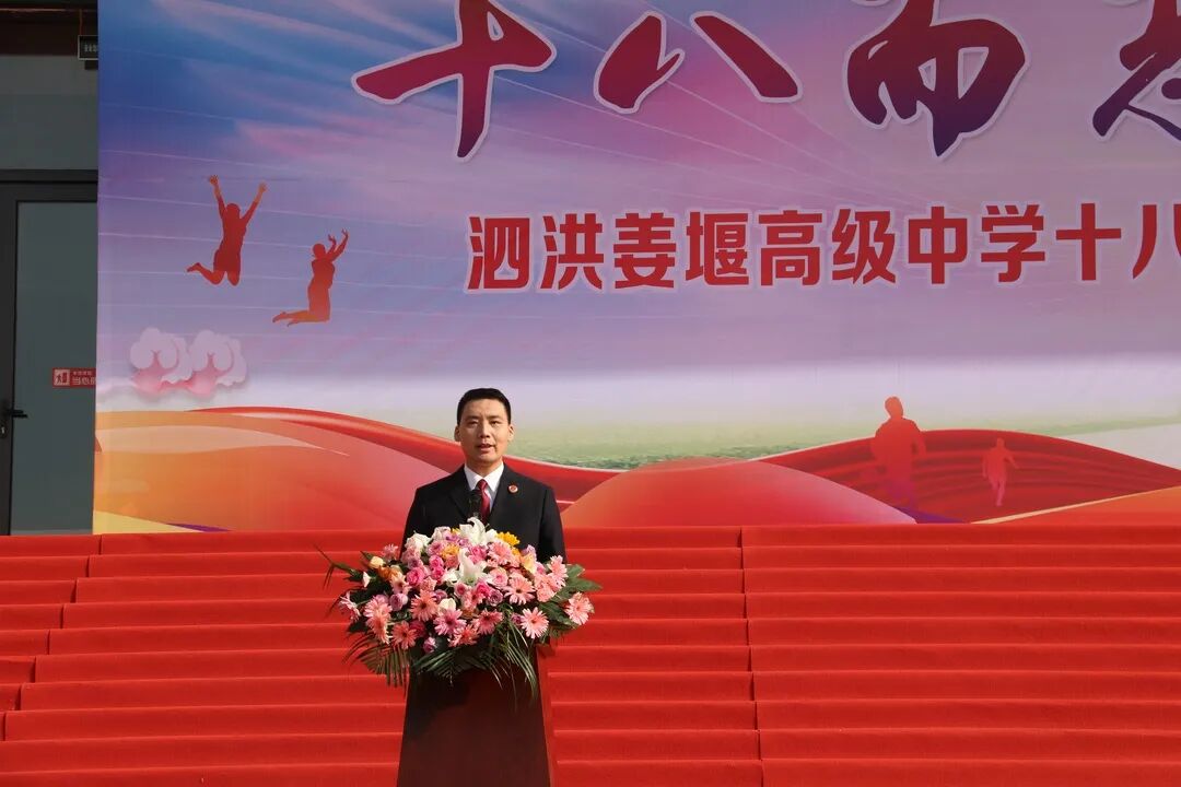 5月8日上午,泗洪姜堰高级中学2023届高三学生十八岁成人仪式在升旗广场隆重举行。王艾洁副校长主持仪式,县检察院党组成员、组织部主任、法制副校长王杰,我校领导班子全体成员、高三年级全体师生及部分学生家长共同参加了这场青春盛会,见证了高三学子跨入成人行列的神圣时刻。