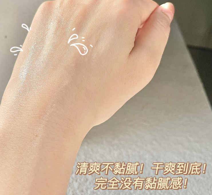 小小的一瓶,携带起来很方便,走珠设计的蛮丝滑的,很好涂开,质地是水润润的质地,也是很轻薄的,涂抹之后没啥感觉,吸收比上面那一款稍微要慢一点,但是也是不到一分钟就可以全部吸收的。