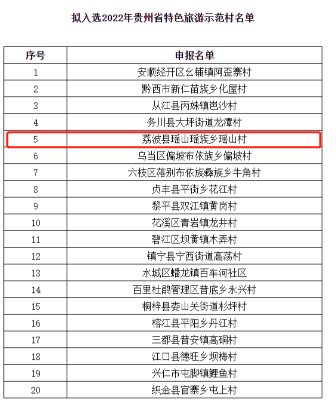 荔波瑶山村榜上有名