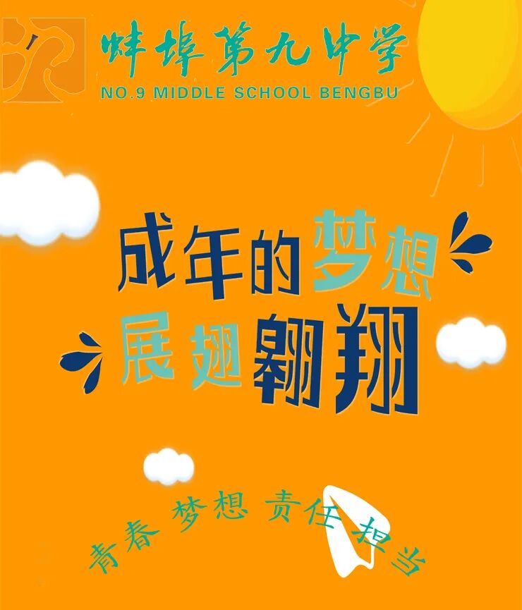 点燃生命的激情,憧憬美好的未来,蚌埠第九中学于2022年5月19日(周四)下午举行“喜迎二十大 永远跟党走 奋进新征程”为主题的十八岁成人仪式。蚌埠九中校领导、教师代表、高三学生代表现场参会,家长代表、上海交通大学周斌博士、新集中学的师生代表线上参会。本次活动由团委马小雨老师主持。