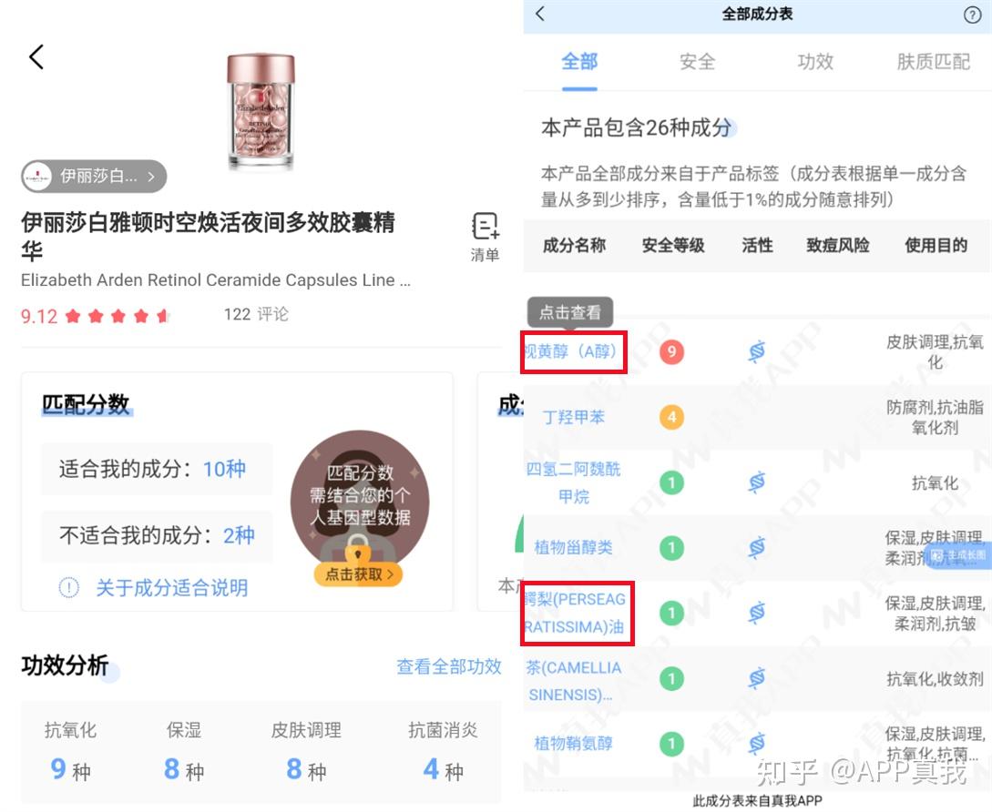 这个真我APP就有一个功能,是在查询产品成分的同时,帮助大家分析产品成分适配分数,这样适不适合使用,对自己有没有致敏刺激风险,就一目了然了~