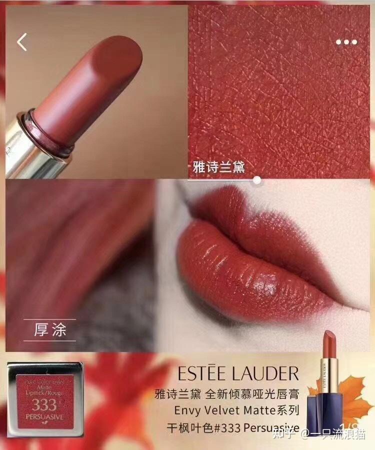 雅诗兰黛333色,薄涂南瓜调重,非常显白。厚涂是秋冬感浓重的枫叶红??