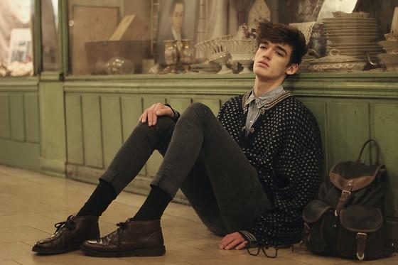 最常见的搭配就是白衬衫/浅蓝牛津衬衫/牛仔衬衫/浅灰衬衫等各种浅淡色的衬衫,外加藏蓝/灰色/黑色/咖啡色/军绿色等类似中性色的毛衣,然后加工装棉服/羽绒服/大衣之类的御寒外套。合身的裤子加厚实的短靴。