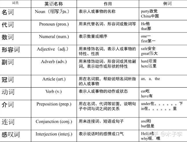 词性是一个单词在句子中的作用,不了解词性,就无法系统学习英语语法,更别谈提高英语阅读水平了。英语中的词性共有十类:名词、动词、形容词、代词、数词、冠词、副词、介词、连词、感叹词。 按照作用和例句,我放了以下的图: