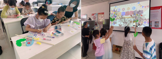 活动现场,孩子们认真学习制作和彩绘风车的各个步骤后,在家人的暖心陪伴下,孩子们拿起工具,认真挑选颜色,用稚嫩的小手在风车上细心描绘,然后把绘制好图案的风车叶片组装起来.....一个个色彩鲜艳、图案可爱的大风车便制作完成了。
