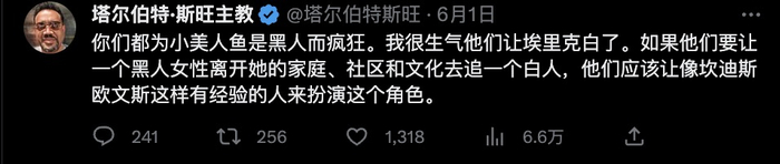 就连有些黑人都看不下去了,他们坦诚地表示:我是黑人,但我也不想看一个“黑美人鱼”。
