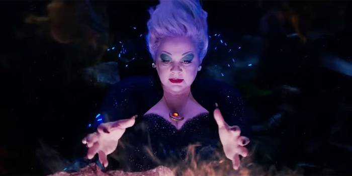 《小美人鱼》里,女巫乌苏拉可能涉及种族歧视,因为她有淡紫的神色皮肤和黑色的触手下肢。所以在新版电影里,她被反向“洗白”,成了白皮肤的蓝环章鱼,偏紫的色调全靠打光。