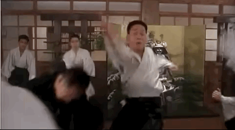 这一场的动作戏设置,在功夫片里非常常见,群戏里,敌人一个接一个地衔接非常精密,甚至切入进来的时间,也都是恰到好处。
