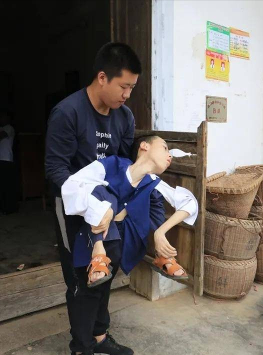 虽然他的智力没有问题,但因双腿发育不全,所以钟华强从小就不会行走,不管去哪里都得让人背着去。