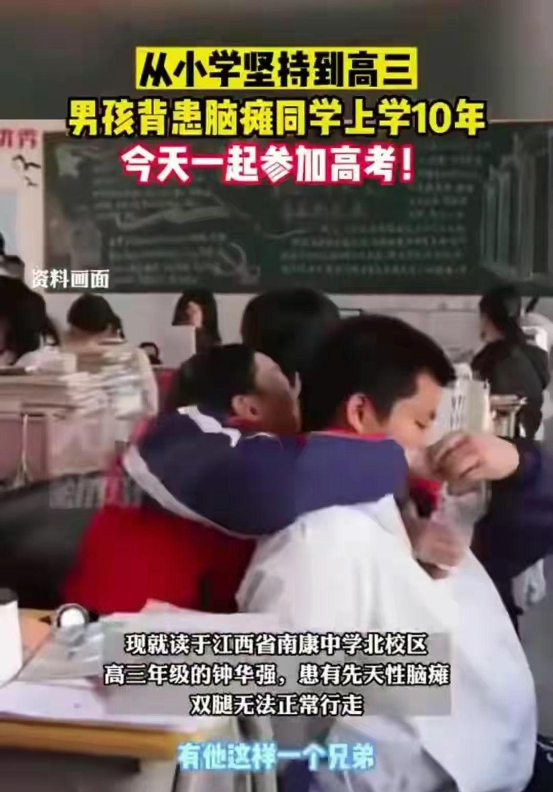 手机访问:wap.265xx.com回顾:男孩背患脑瘫同学10年,今年俩人一起高考,十年友谊让人泪目