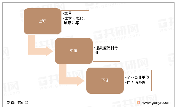 温泉度假村行业产业链上游产品包括建材(水泥、玻璃)及家具等,下游主要为个人消费者及企事业单位。
