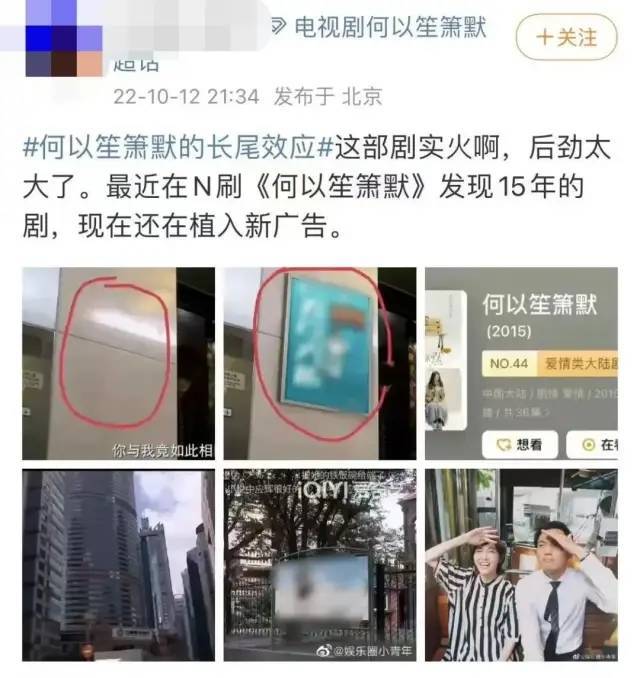 今年是《何以笙箫默》开播的第七年,有网友发现剧中的广告还在更新,前有乐视因为《甄嬛传》保了公司终生富贵,原本是 " 公司缺了谁都不能缺了老板 ",现在是 " 这个公司可以没有老板 "。