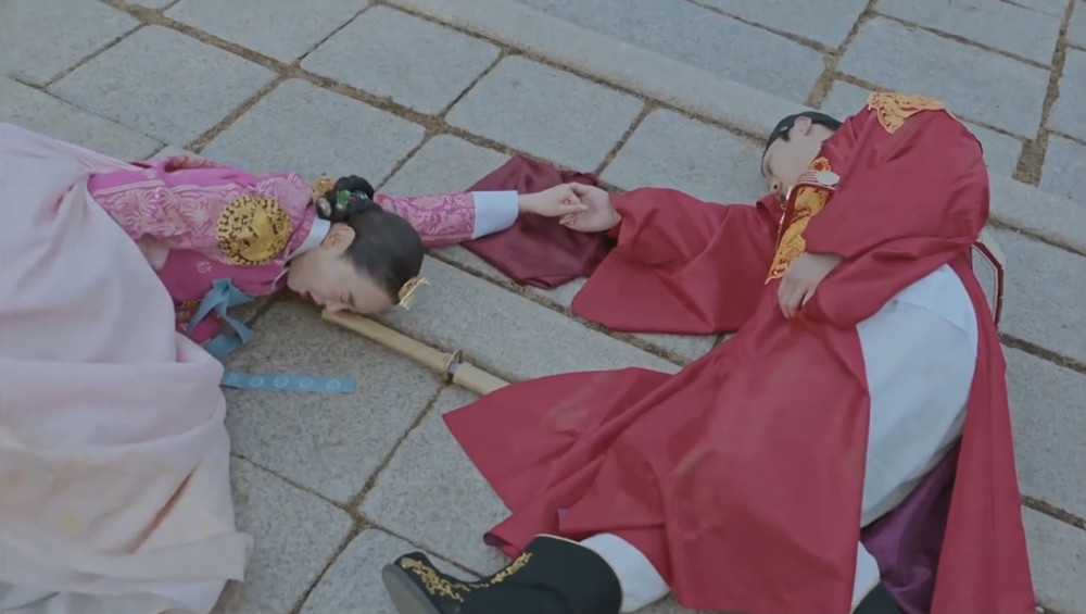 电视剧最后一集,哲宗和金昭容赶去大殿阻止登基大典,金昭容奋不顾身保护哲宗,受到重伤陷入长期昏迷,而穿了防弹衣的男主没有大碍。之后经过抢救,女主醒了过来,两人相拥而泣。