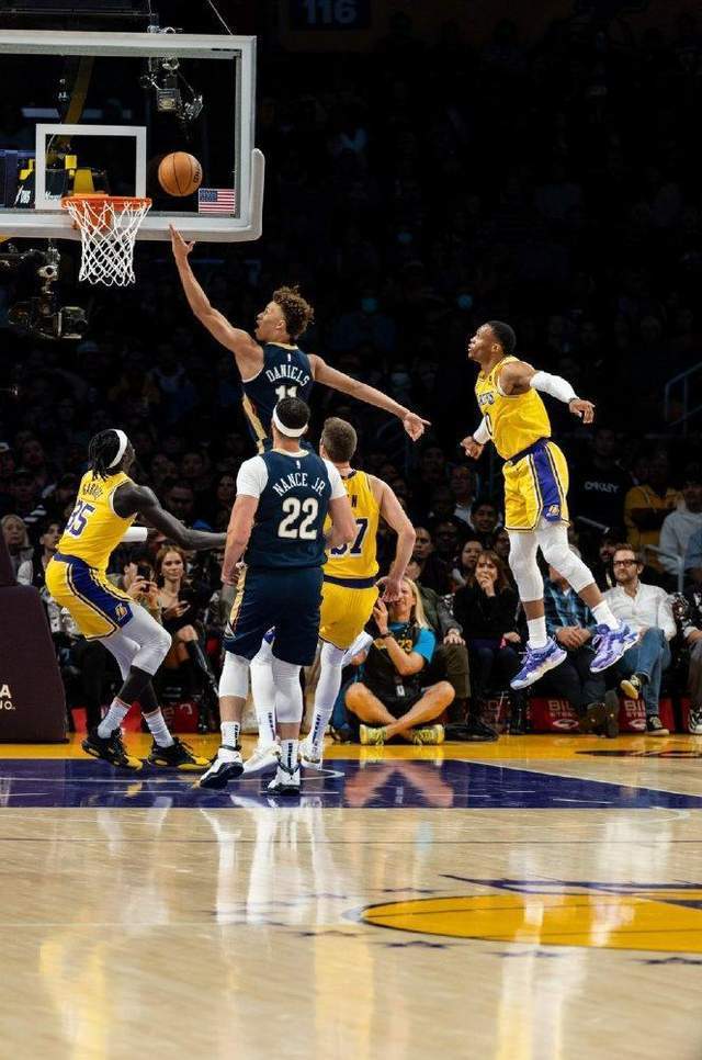 直到第三节比赛戴维斯才找到比赛节奏,挡拆顺下和队友打出了几次配合。威少上场之后表现依旧出色,持球单打锡安上篮得分,一步加速就把锡安抛到身后。防守回合也被锡安造成犯规,双方有来有往,下一回合威少防锡安成功,接着助攻布朗抛投得分。威少在场上有些上头,自己冲击上篮不中,接着出现两次失误,被鹈鹕抓住机会将比分追到9分,威少被詹姆斯换下。莱恩本场比赛手感不佳,多次出手也没有。鹈鹕队在阿尔瓦纳多的带领下,一人得到8分,率领打出一波15-0。随后加布里埃尔抢到前场篮板补篮得分,詹姆斯单打上篮命中,接着助攻沃克罚球线抛投打进,湖人还了一波6-0。第三节结束湖人82-79领先鹈鹕2分。