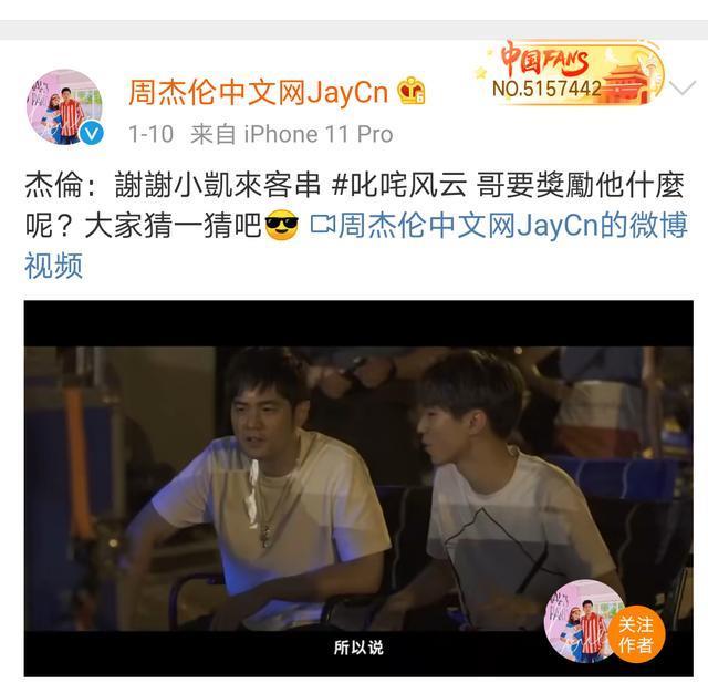 众所周知周杰伦是小凯的偶像,只要听到小凯嘴里哼着歌,那一定是周董的,是铁粉一枚了,如今不但和偶像同台演戏,还收到了来自偶像的这么重要有意义的礼物,恭喜小凯追星成功!