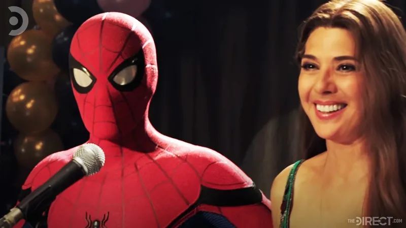 在《蜘蛛侠:英雄远征》中,梅姨举办了一个晚会并邀请彼得·帕克以蜘蛛侠身份出场,预告中这一幕蜘蛛侠是穿着普通战衣的,但是在正片中,他穿的是《复联4》的钢铁蜘蛛侠战衣。