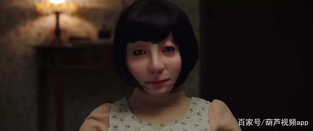 这个中介给自己的充气娃娃打扮得还真像那么回事,不仅有围裙,还配备一个豹纹包包,他们一起吃饭的时候这个娃娃突然眼睛可以动了,头还断了,这里的画面非常惊悚。
