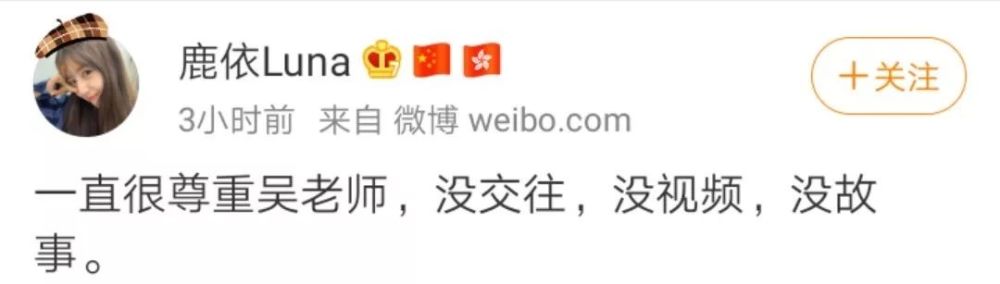 几个小时后,微博上@鹿依Luna 公开表示:没交往,没视频,没故事。