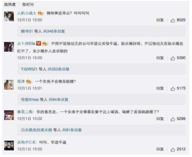 很显然这样的解释很难让人接受,有人就表示质疑:“你的意思是,一个女孩子全裸着在窗子边上喝酒,喝醉了发酒疯跳楼了?”