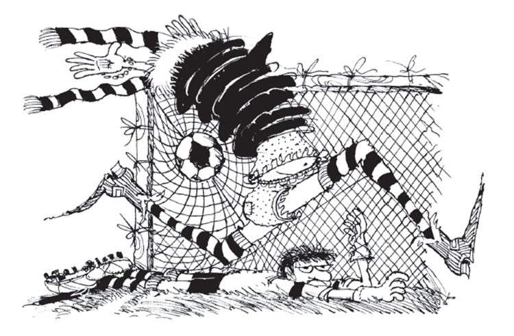 温妮加入了一支足球队,不小心把球踢进了自家球门,而她本人却毫不知情,还在那儿疯狂地庆祝呢。