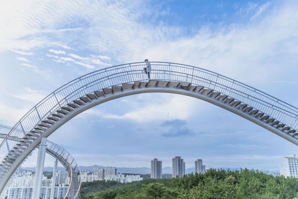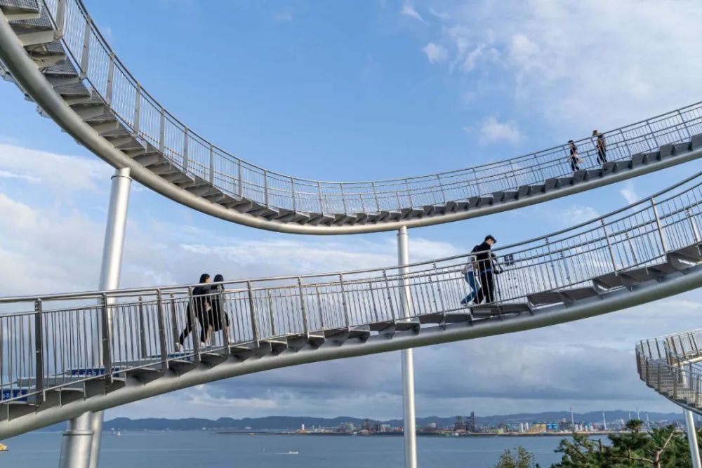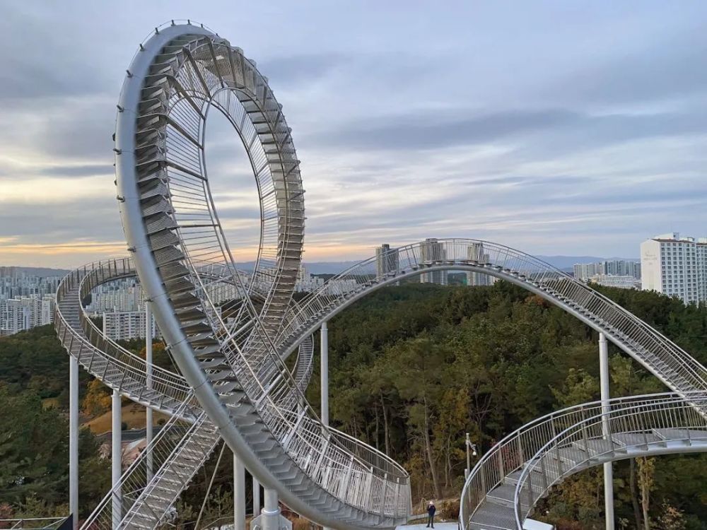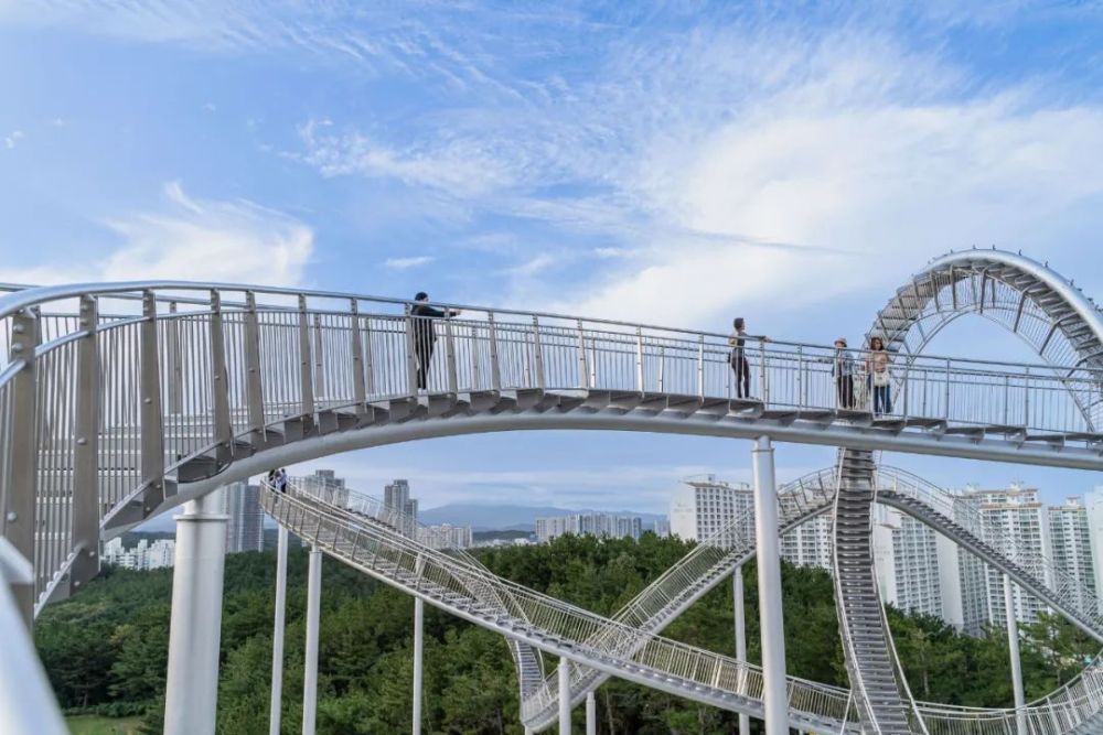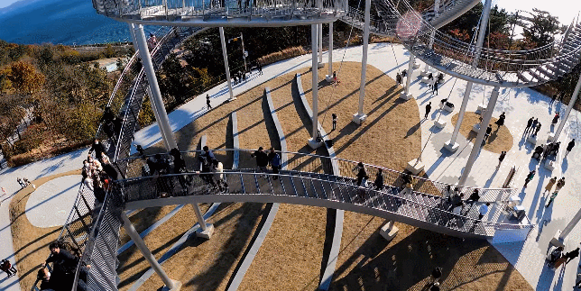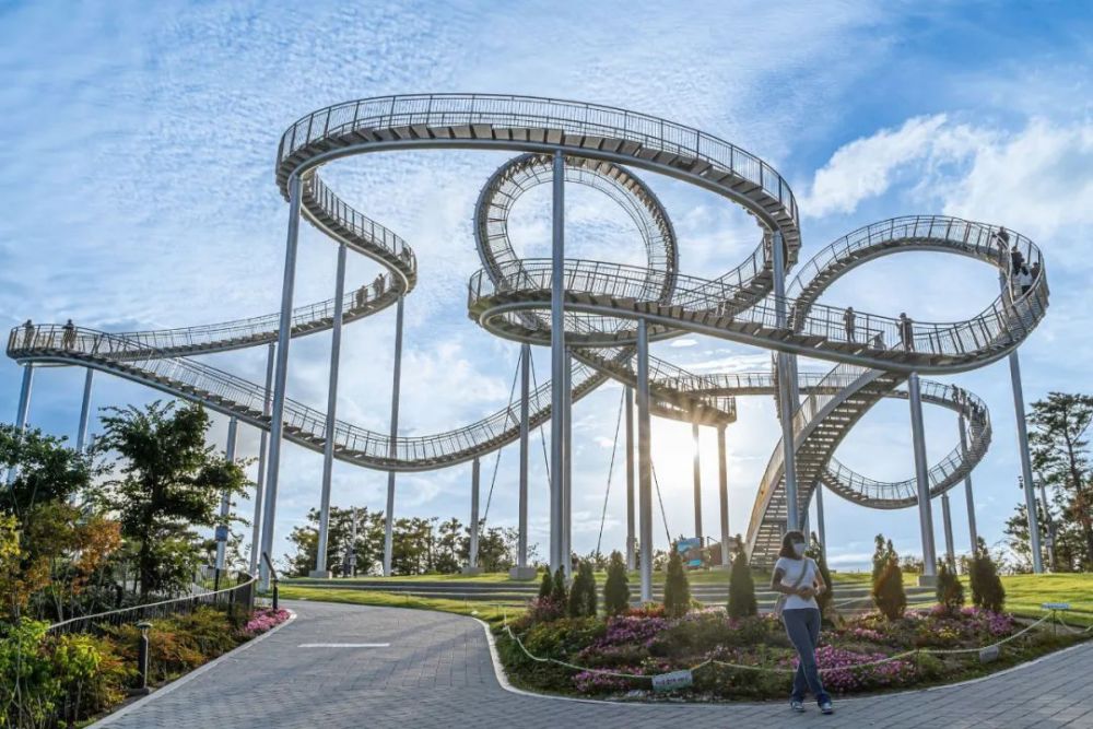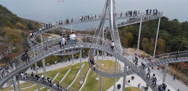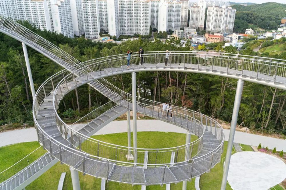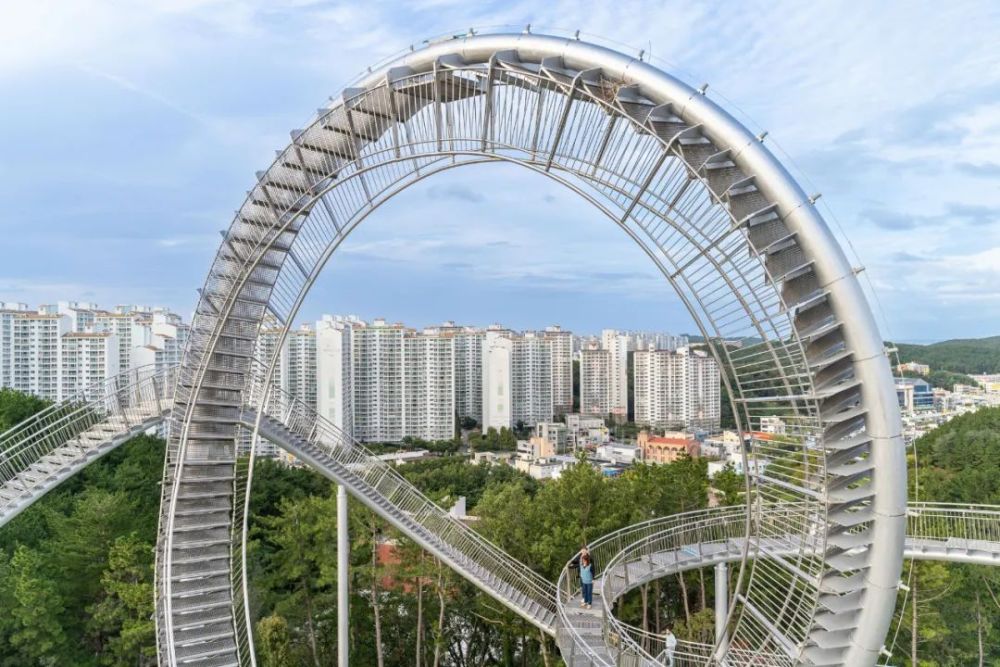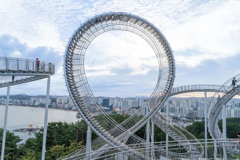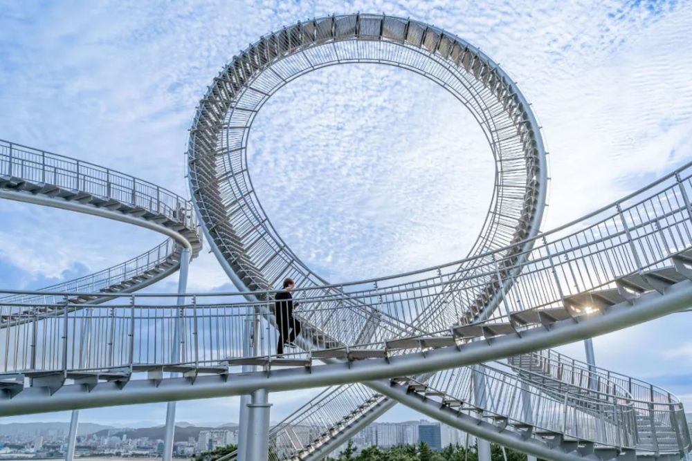 这座纪念性的楼梯蜿蜒盘旋,立面类似于浦项的过山车,除了最里面的环形道路,行人几乎可以完全到达。这是韩国有史以来安装的最大的当代公共雕塑。这是一件在韩国很难看到的新概念步行体验艺术装置,是一件从观看者只能看不能碰转变为直接可以走进艺术、与艺术融为一体的雕塑作品,也是代表浦项乃至整个韩国的地标性建筑。