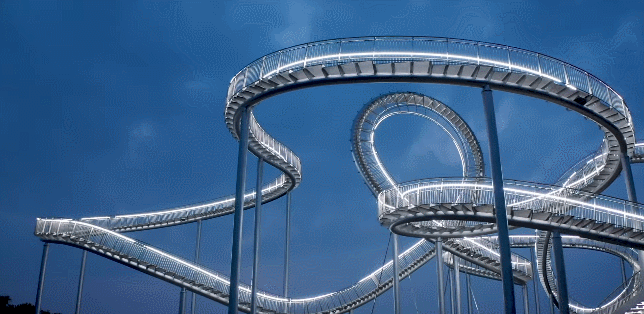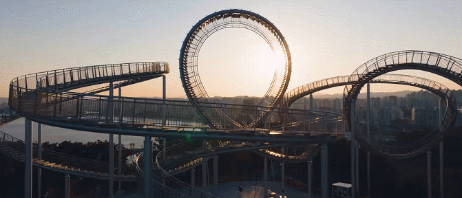 过山车本来就颇具刺激感,今天这个空中长龙一改速度的刺激,成为景观雕塑和观景平台,蓝裕文化主题开发设计院认为这是主题跨界创新的成果。整体看来,这个项目颇具吸引力,而且地理位置绝佳,给人精彩震撼的观景体验,同时也寓意丰富,方便锻炼身体。
