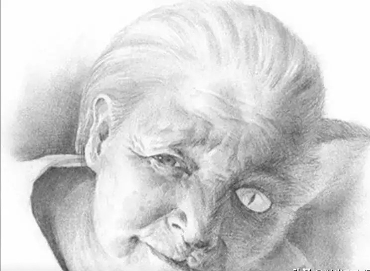 只见老太太的脸看上去一半像人脸,另一半脸皱皱巴巴的,像猫脸似的,眼珠子突出正在盯着他看,老人儿子瞪大眼睛,当场就吓晕过去了。
