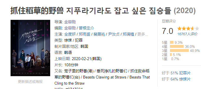 《抓住救命稻草的野兽们》豆瓣评分7.0