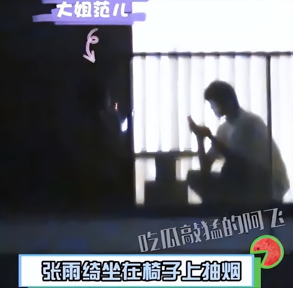 照片中张雨绮坐在角落里吞云吐雾,男子则蹲在小茶几边暖心为其扇走烟雾,两人相处状态颇有几分情侣间的真实舒服。
