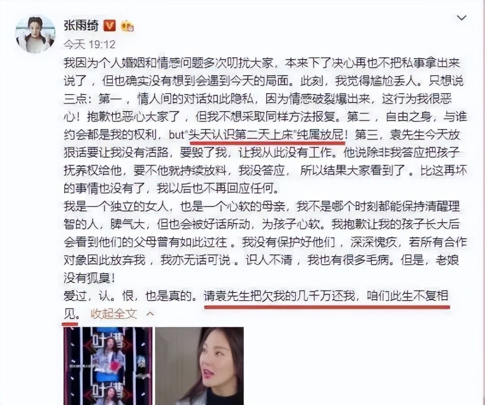 离婚后对张雨绮步步紧逼,频出爆料称其有狐臭,还与初识男人同床共枕…..