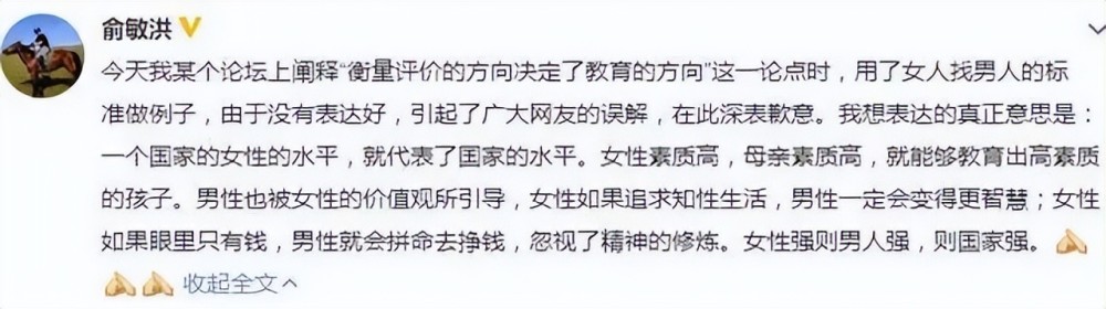 搞得俞敏洪当即认怂,出面回应为自己的言论深表歉意,称女性强则国家强。