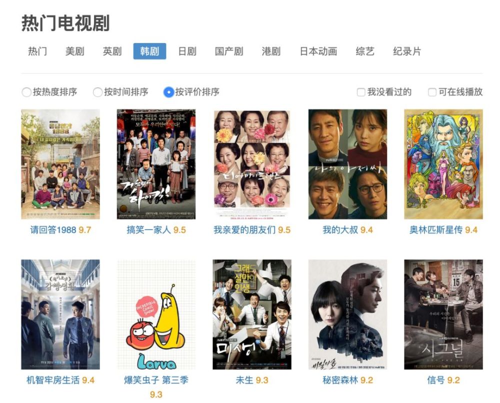 打开豆瓣韩剧,按分数由高到低排,我们发现位于上圈位的多为近几年出现的现实题材作品。