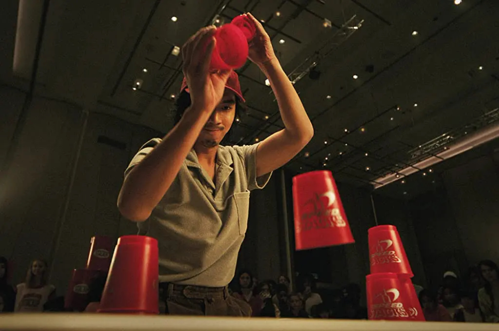竞技叠杯,拼的是手速。影片利用各种抽帧、慢动作、快速剪辑,配合大气恢弘的音乐,愣是玩出了好莱坞大片那种燃向的感觉。