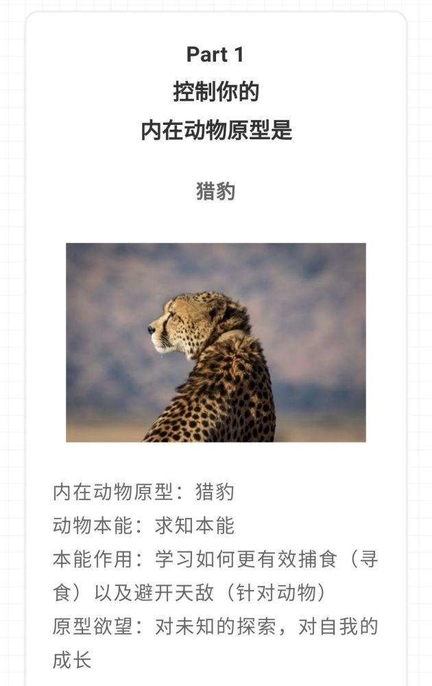 你的优缺点,光明与阴暗的一面、恐惧与力量的源泉,都将在你的动物原型中一一呈现。