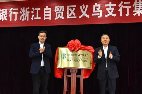 时任义乌市委书记(左)为浙江自贸区义乌支行揭牌