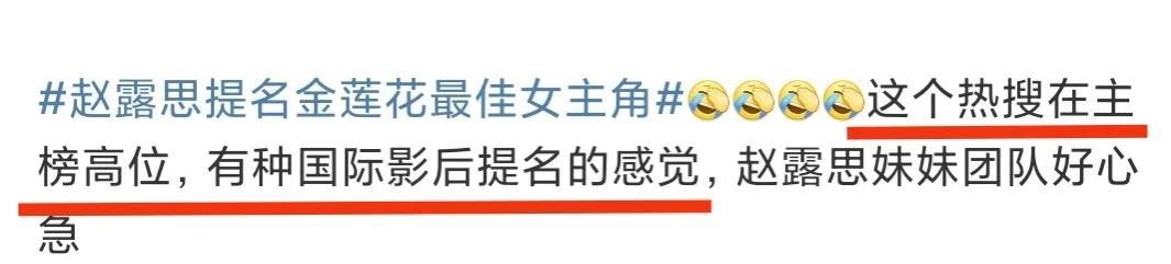 仅仅提名金莲花奖便可轻松登顶高位热搜,质疑的声音也纷至沓来,不知道的人还以为赵露思是提名了某项国际影后呢,仅仅提名就如此大张旗鼓,真的有些营销过头了。