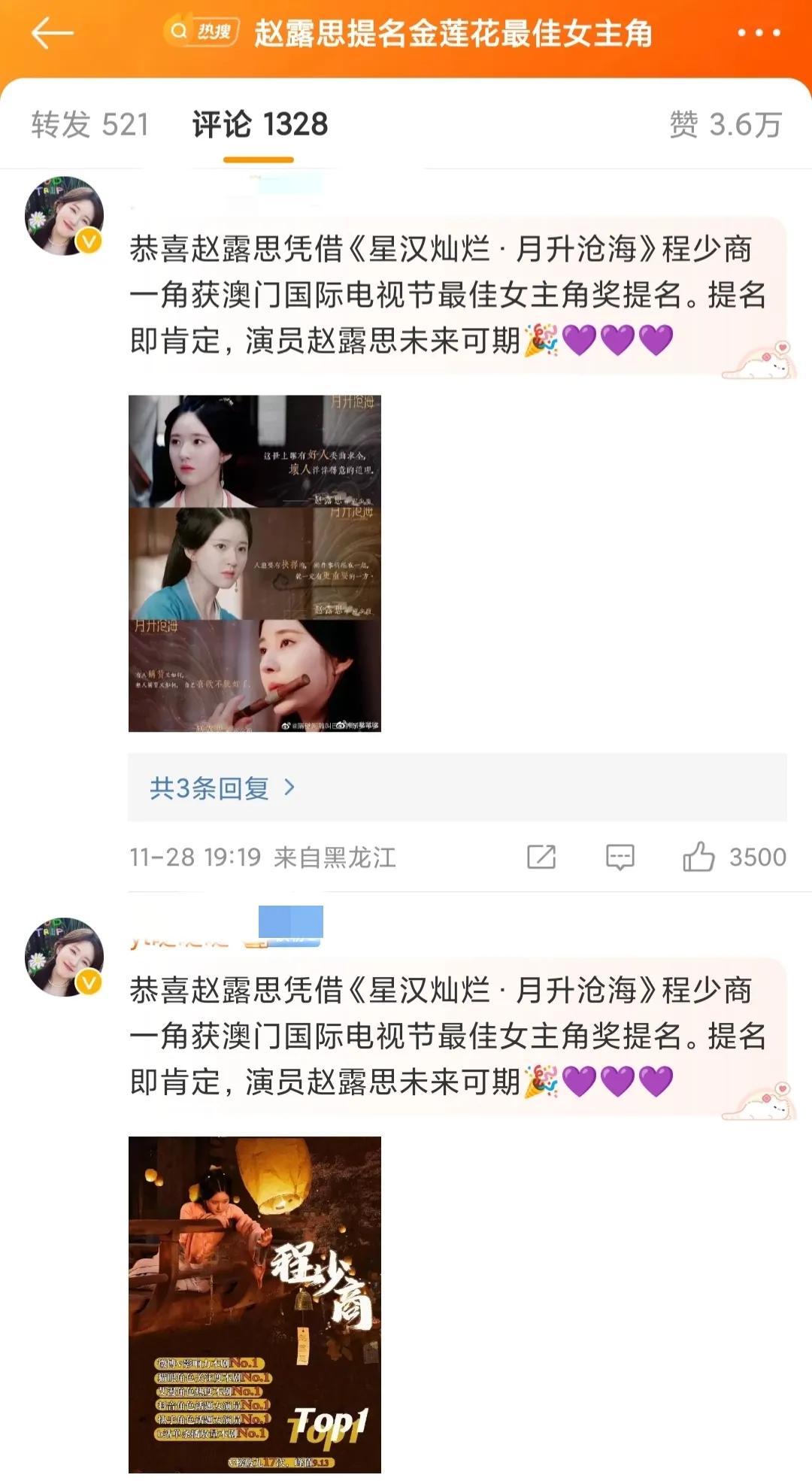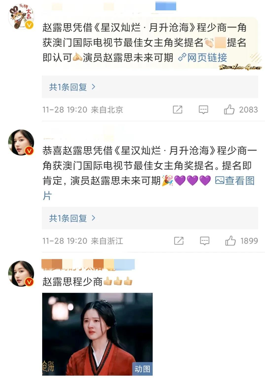 赵露思被提名金莲花奖,是对其演技和表演的肯定,本身就是一件十分值得高兴的事情,所以赵露思的“事业粉”纷纷为她摇旗呐喊。