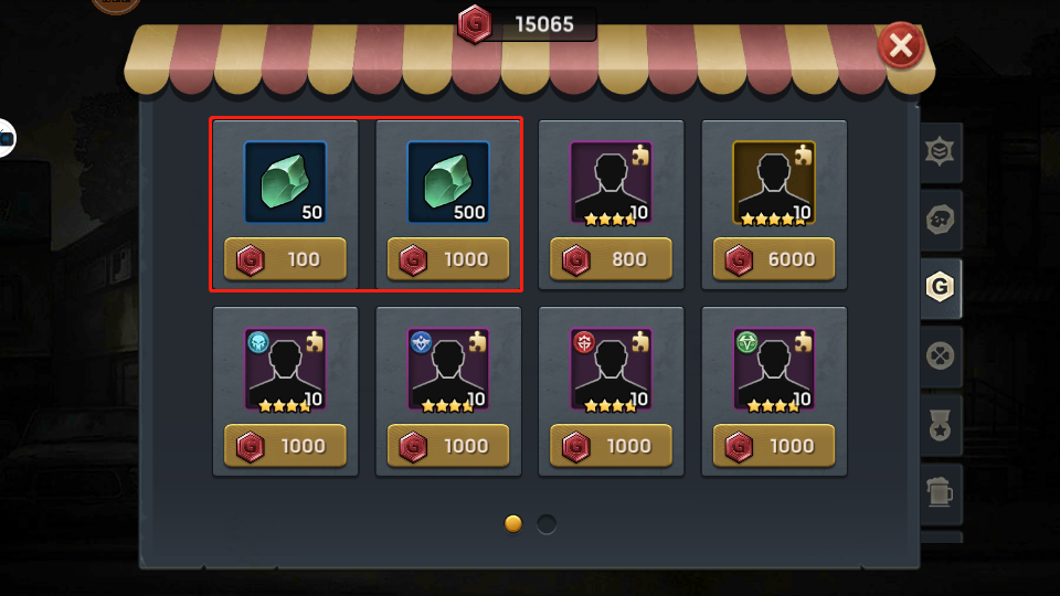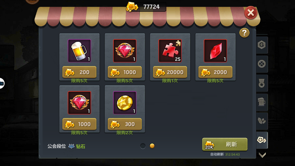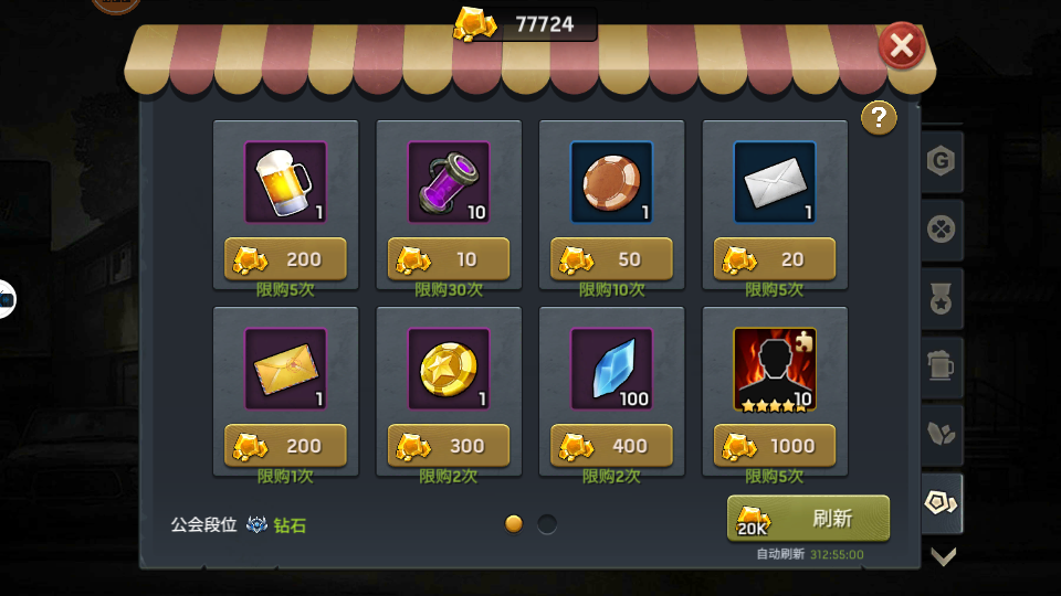 从图中可以看到第一页能兑换的道具,除了啤酒外都是很一般的道具,那么我们就得留着更多的晶石去兑换后期开放的月币和红水晶,啤酒可以适量兑换