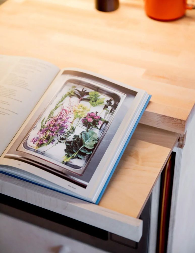 微波炉上方还隐藏着一层小抽拉柜,非常方便一边做饭一边查看菜谱~做隐藏式砧板也得心应手。