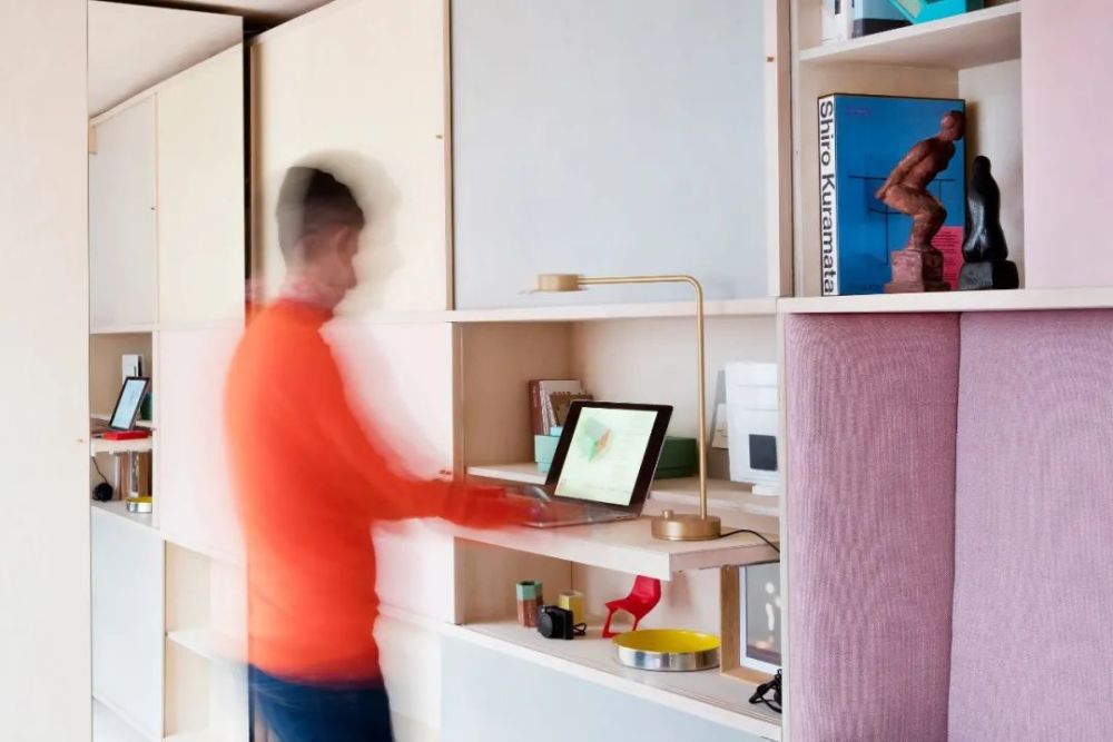 其中一个门打开可以成为站立式办公桌,可以做成为简易的工作区。