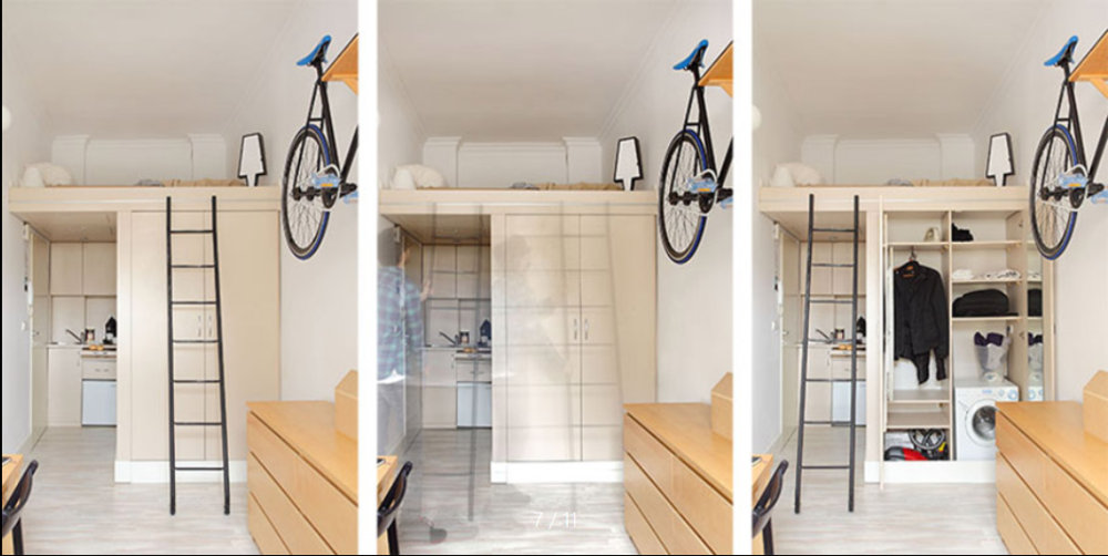 设计师对家具的改造再利用,为地板、墙、甚至天花板释放出更多的空间,什么是真正舒适的生活?一定要空间够大够宽阔吗,不,“蜗居”同样也能住出舒适感。