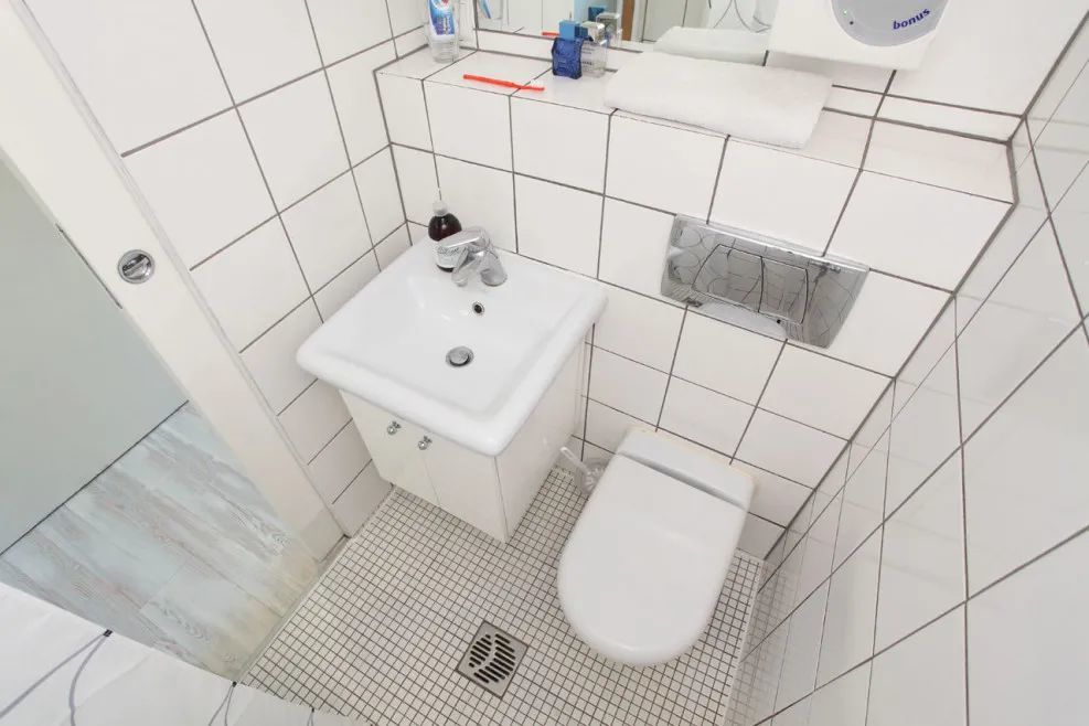 哪怕只有2-3㎡,紧凑中也要五脏俱全。纯白的小方砖,更显简洁。