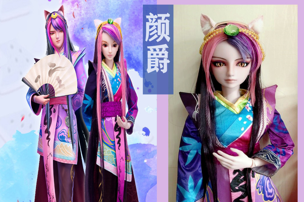 不过在妆娘的手下,利用妆容的变化把还原了颜爵狐狸的本性,眯着一条缝的橘红色瞳孔还真的是惟妙惟肖。不过颜爵这款娃娃的头有些大了一点,不太符合长脸狐狸的形象。