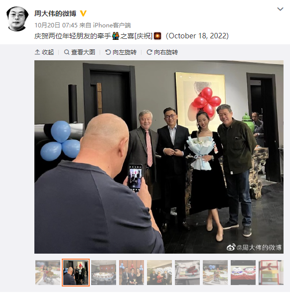 而在周大伟有个人微博账号“周大伟的微博”上,周大伟晒出了今年10月20日与贺公知一起活动的照片,关系那可非同一般。