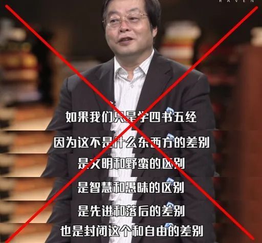 然后,周大伟继续这种话术,称“如果我们只是学四书五经,这就不是东西方的差别,是文明和野蛮的区别、智慧和愚昧的区别、先进和落后的差别,也是封闭和自由的差别”。