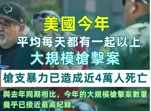 比如美国每天都有大规模的枪击案,今年以来已经有4万美国人死于枪击案。