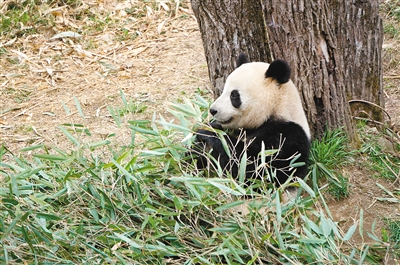大熊猫在吃竹子 记者 谢伟 摄